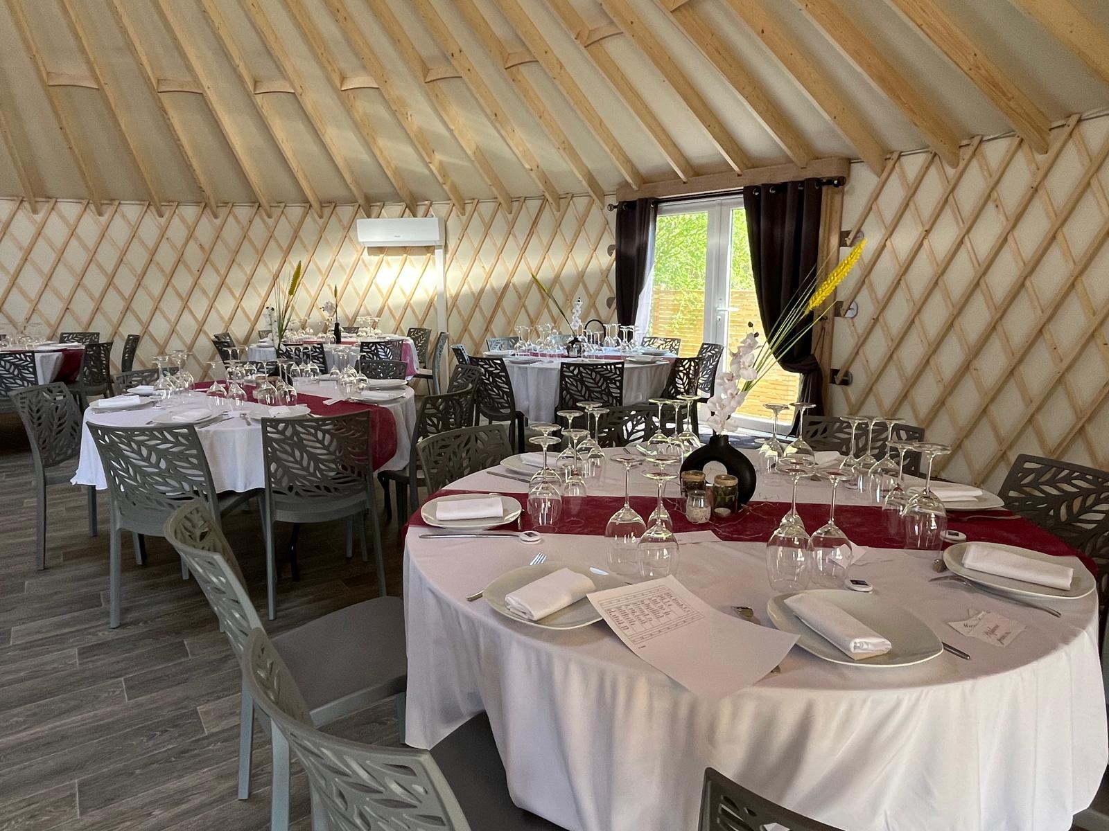 La yourte accueille des séminaires, réunions, repas associatifs ou familiaux. Elle est idéale pour des moments conviviaux et calmes. Les événements festifs avec musique forte ne sont pas autorisés afin de préserver la tranquillité du camping.