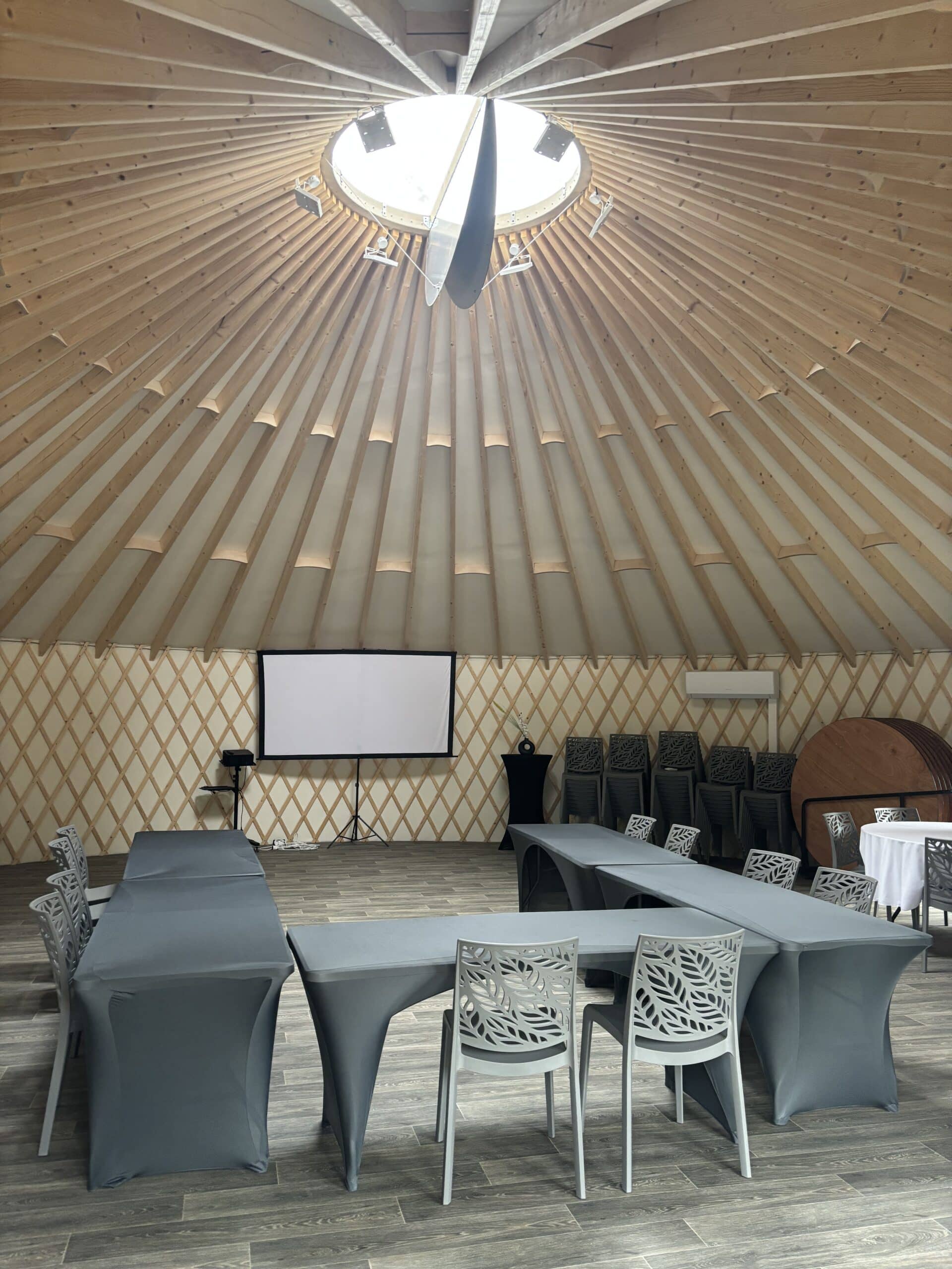 Vous souhaitez organiser un séminaire, une réunion associative, un team building ou un anniversaire ? La yourte de 100 m² s’adapte à toutes vos envies et devient le lieu idéal pour vos événements.